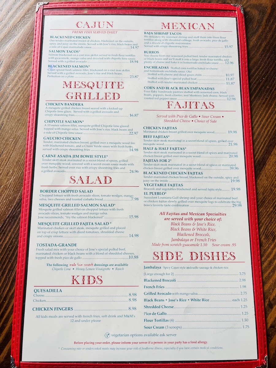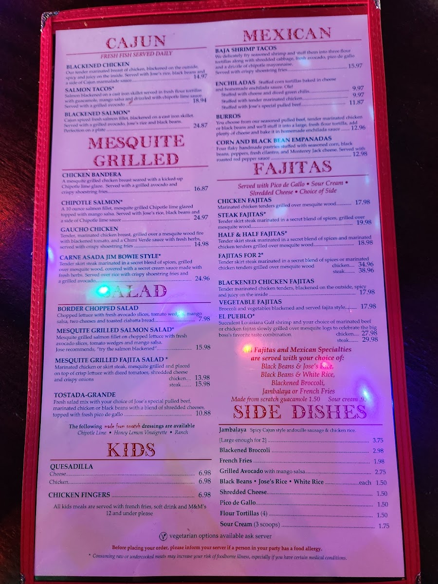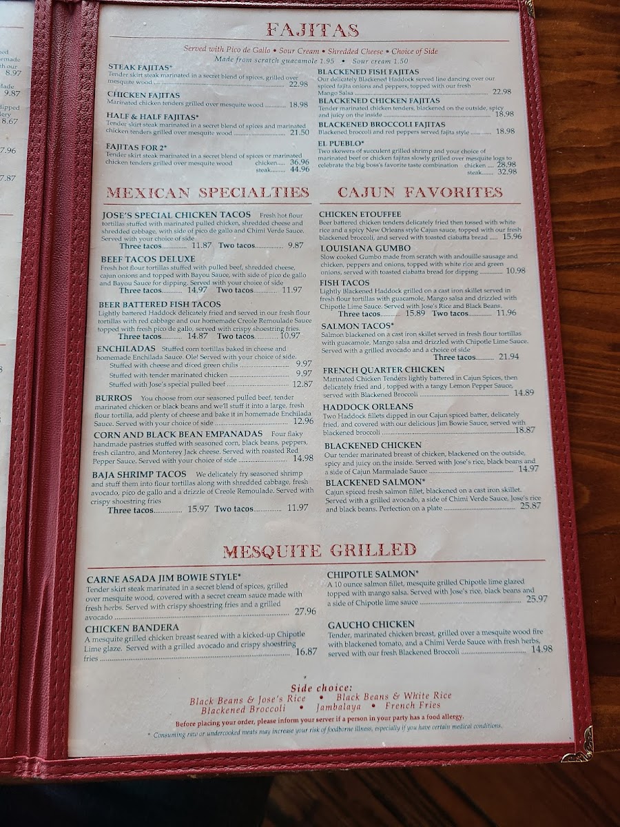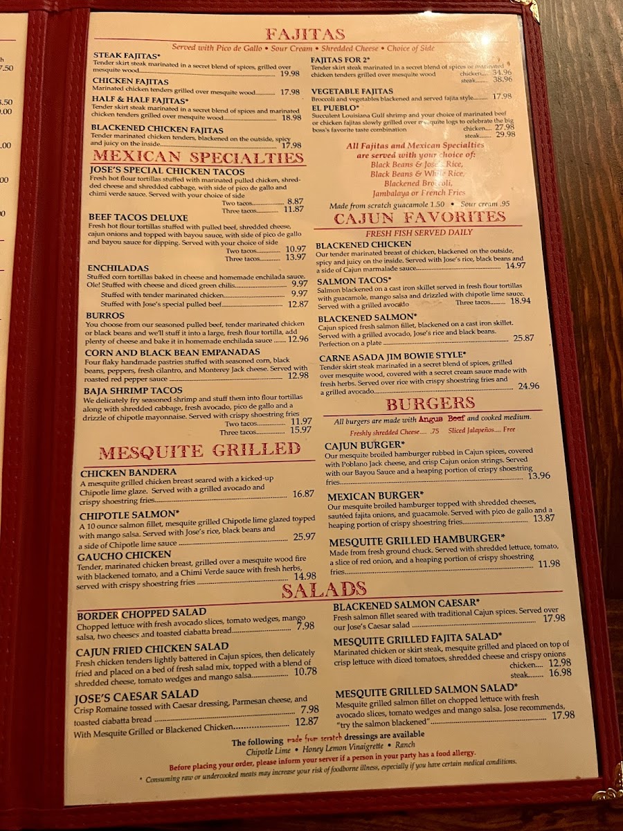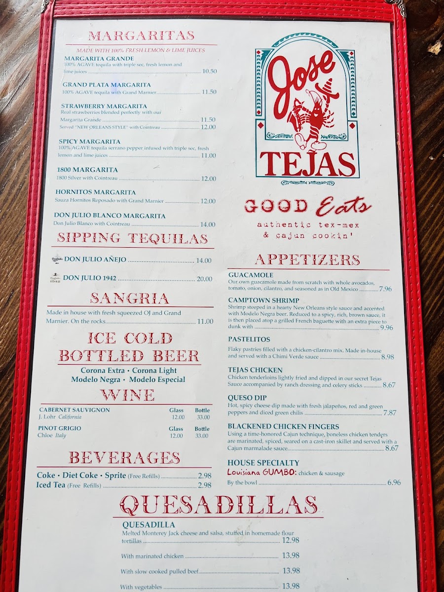 The menu at Jose Tejas offers a relaxed yet vibrant Tex-Mex experience with a touch of Louisiana influence, perfect for casual meals that bring friends and family together. You’ll find a range of comforting dishes designed to suit various tastes and times of day, whether it’s a hearty lunch, a leisurely dinner, or shared plates to accompany drinks.